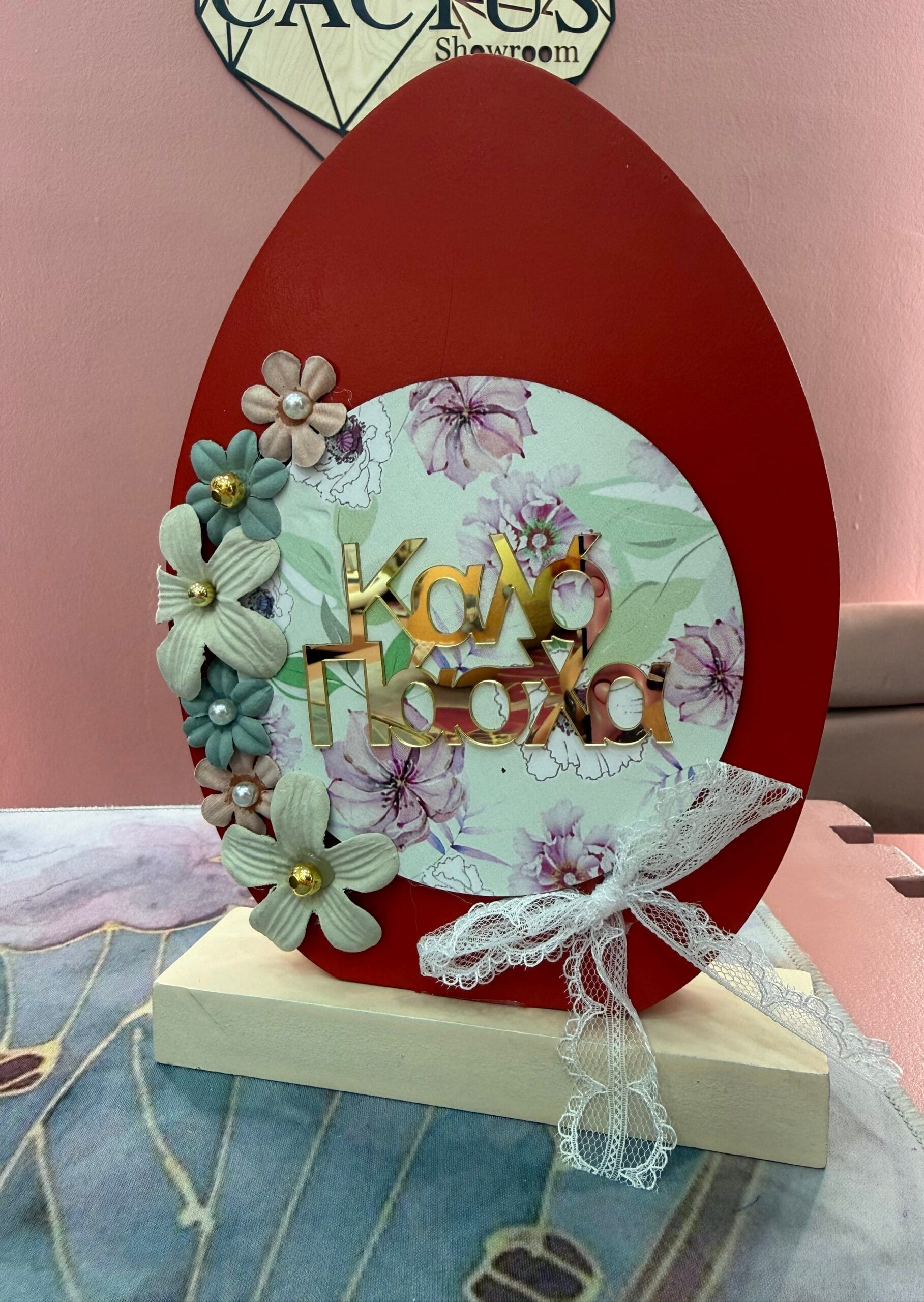 Αυγό ξύλινο διακοσμητικό με βάση κόκκινο