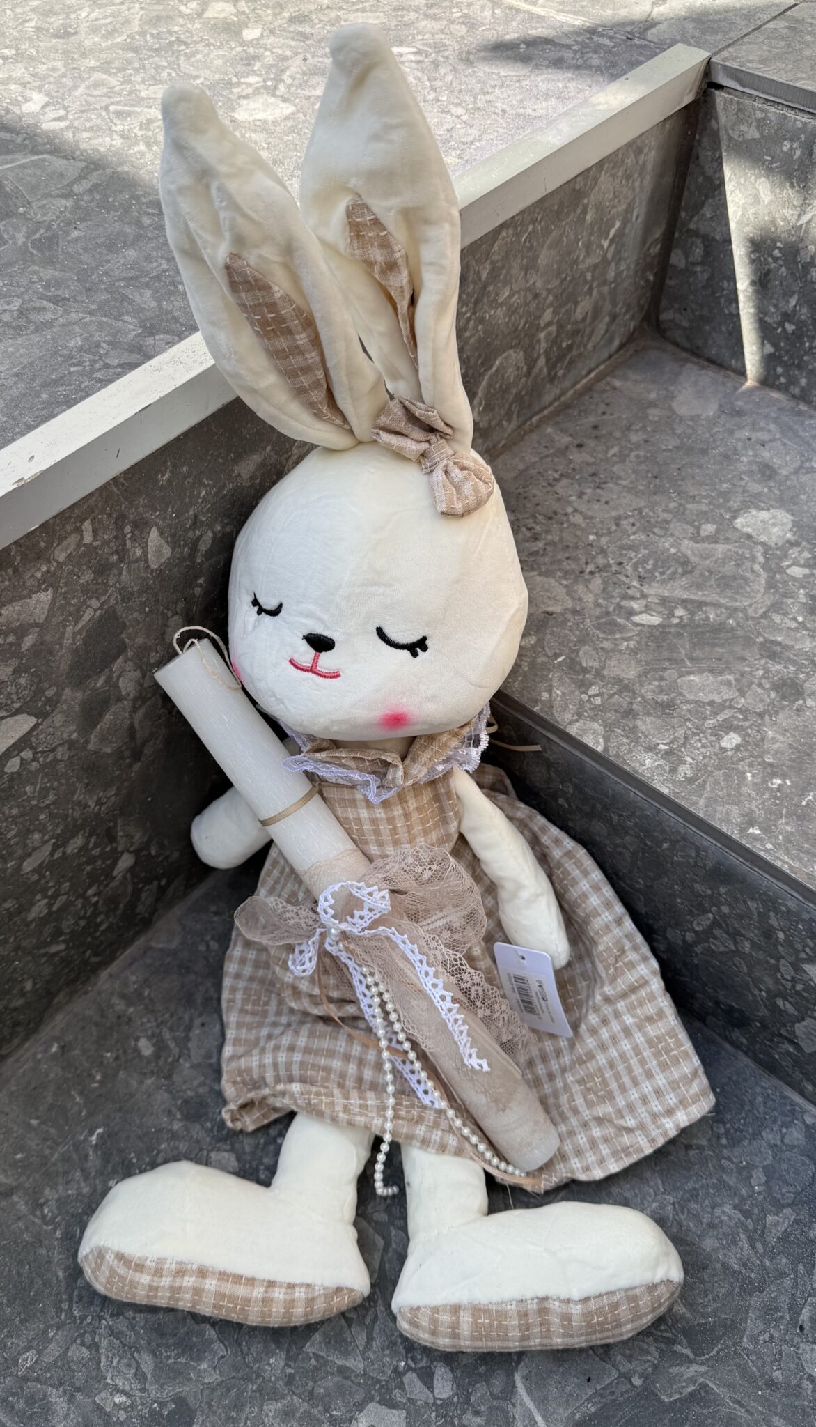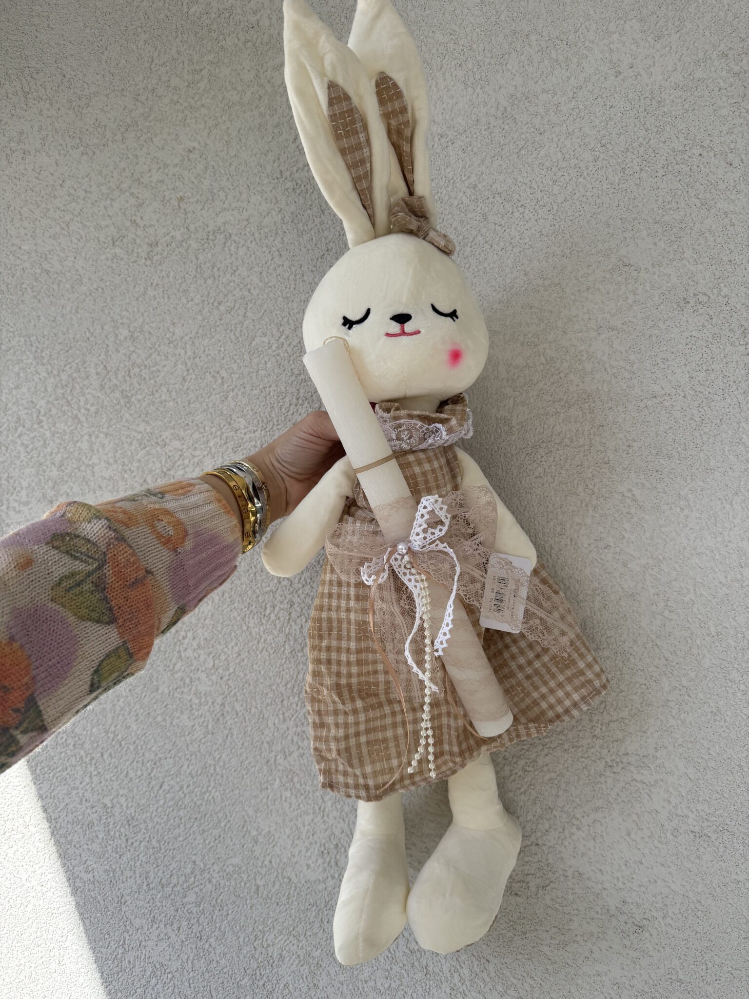 Λαμπάδα διακοσμημένη με λούτρινη κούκλα κουνελάκι 62 εκ