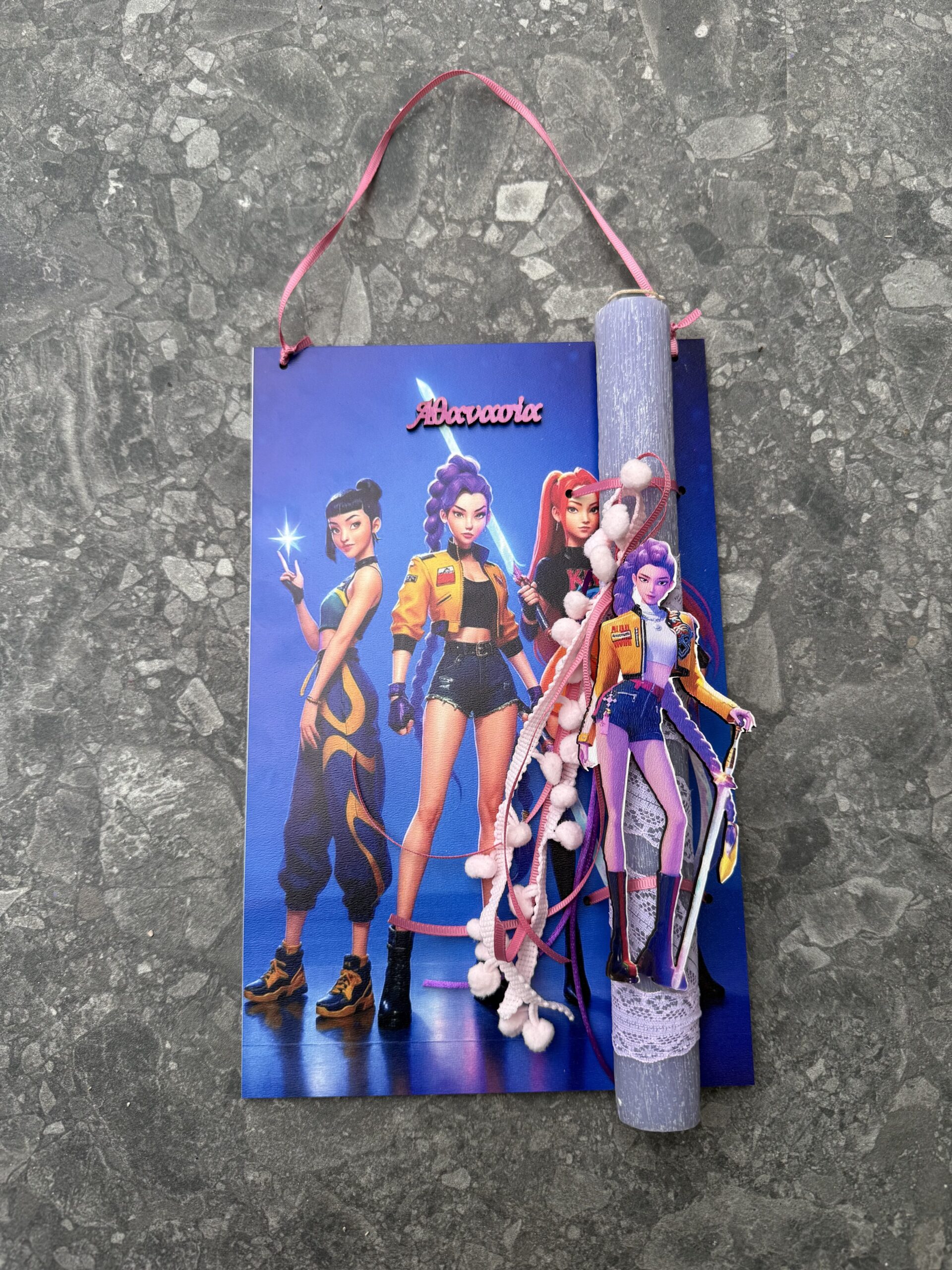 Λαμπάδα με διακοσμητική πλάτη και μαγνητάκι K-pop hunters