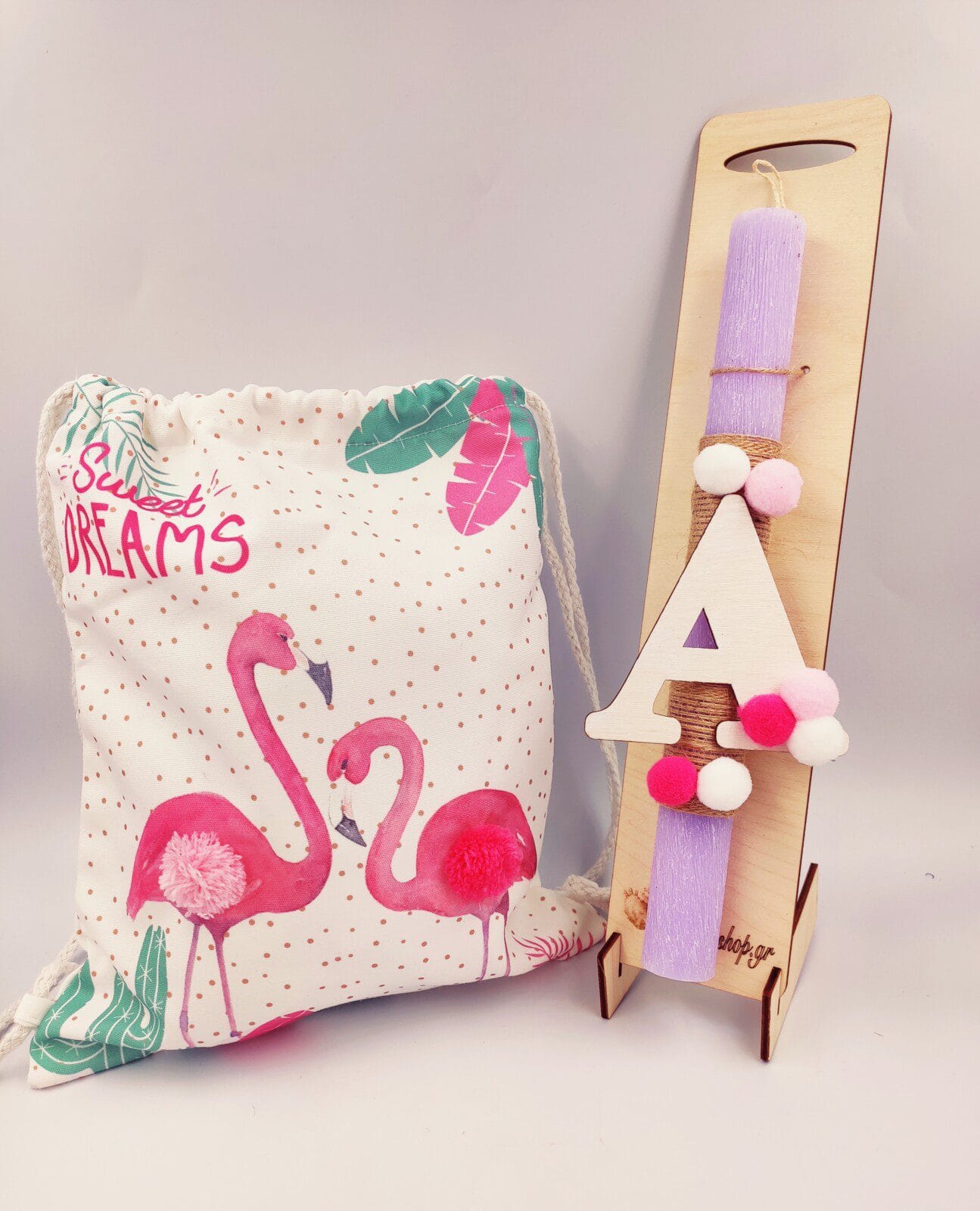 Λαμπάδα με φλαμίνγκο και σακίδιο πλάτης