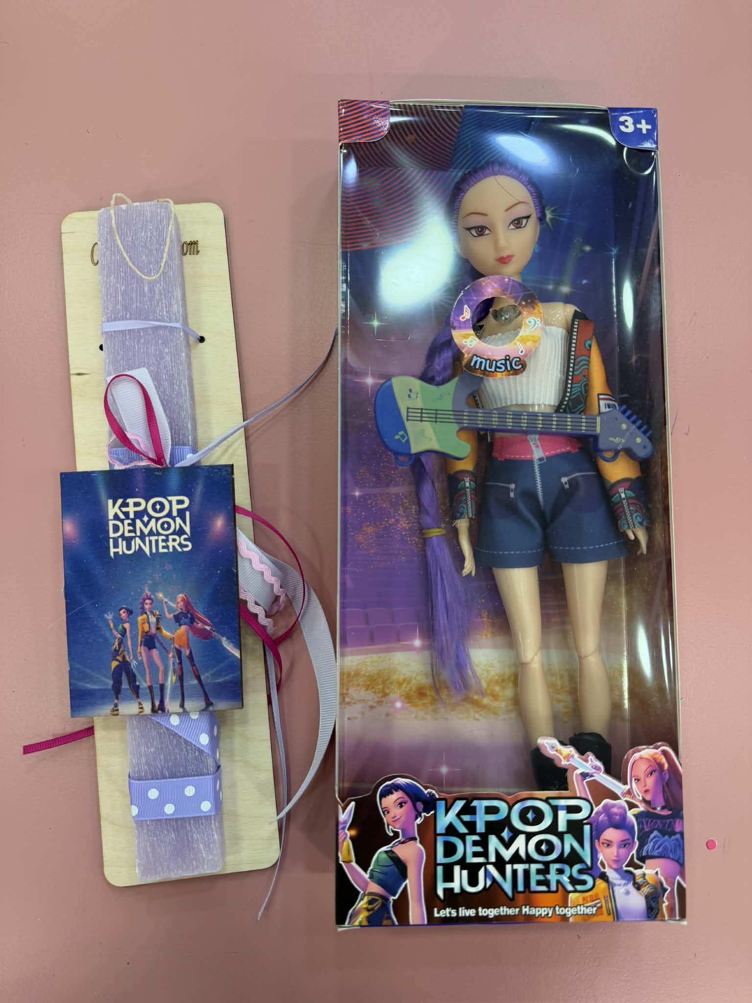 Η λαμπάδα διαθέτει πάνω μαγνητάκι και έρχεται έξτρα στη συσκευασία της η κούκλα , η κούκλα έχει μουσική !