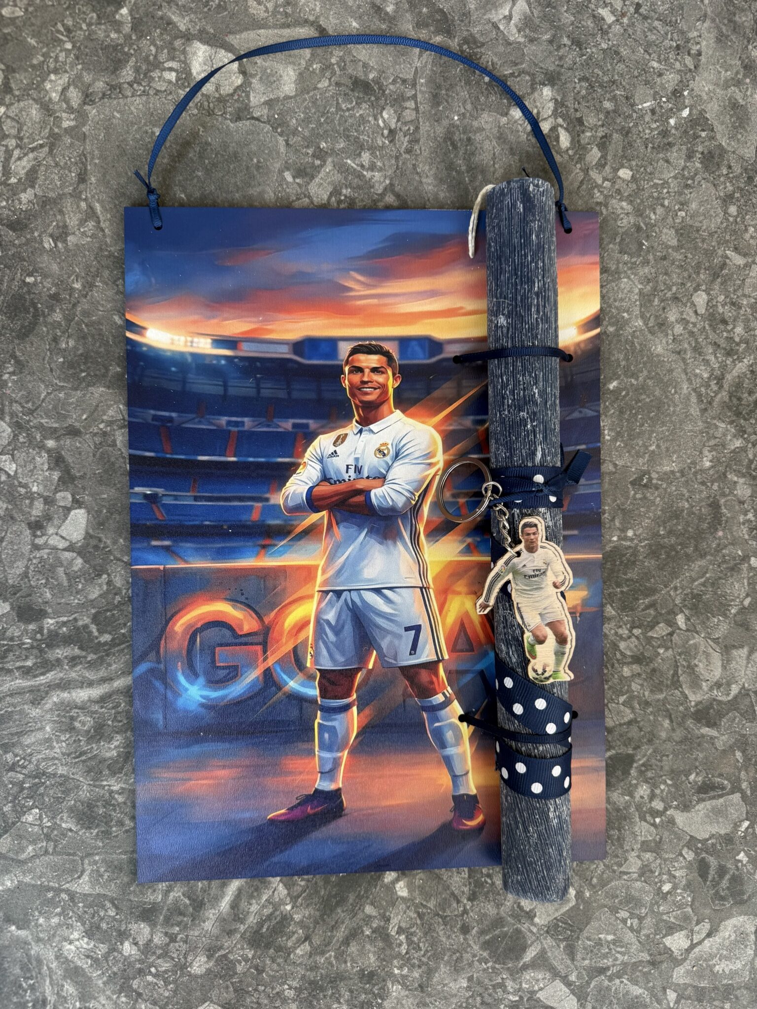 Λαμπάδα με μπρελόκ με όνομα της επιλογής σας και διακοσμητική ξύλινη πλάτη