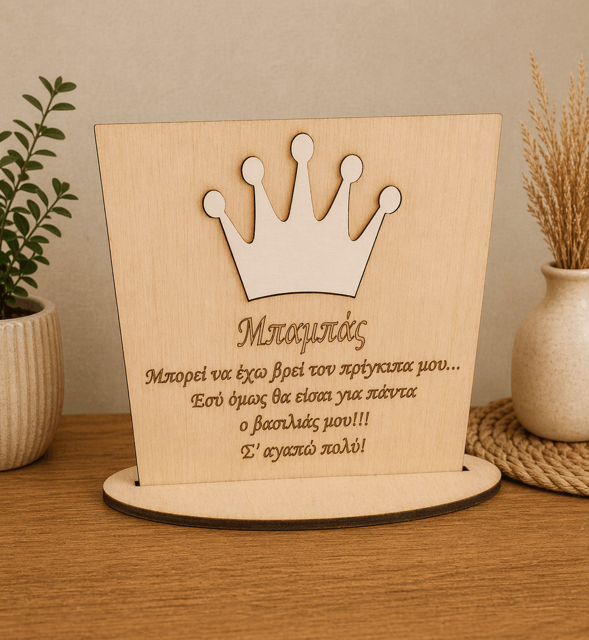 Ξύλινο διακοσμητικό με βάση “μπαμπάς” – κορώνα