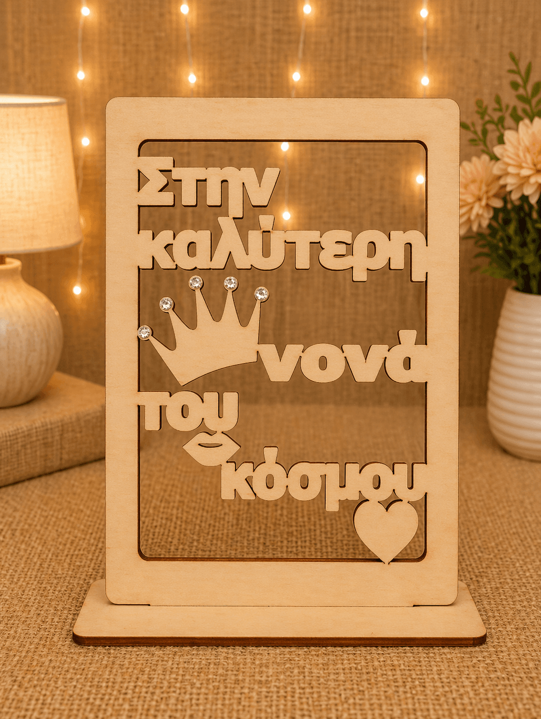 Ξύλινο διακοσμητικό “Στην καλύτερη νονά του κόσμου” με στρας
