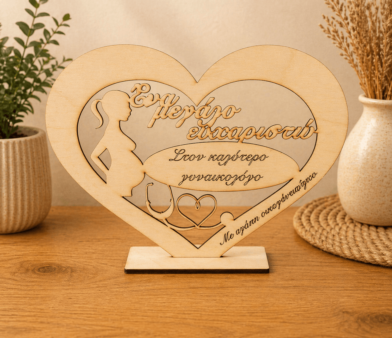 - Ξύλινη καρδιά για γυναικολόγο με το όνομα της οικογένειας που επιθυμείτε