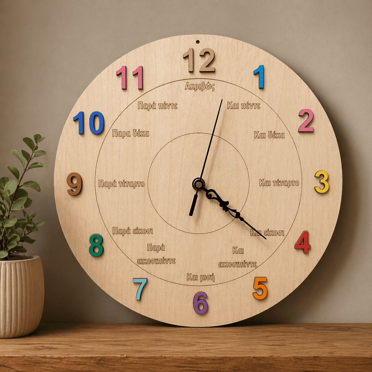 Ρολόι εκμάθησης με ανάγλυφα νούμερα και αναλυτική γραφή της ώρας