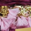 Μαρτυρικό βάπτισης σε χρυσό μπρελόκ με χρυσό σταυρουδάκι και ρόζ φουντάκι