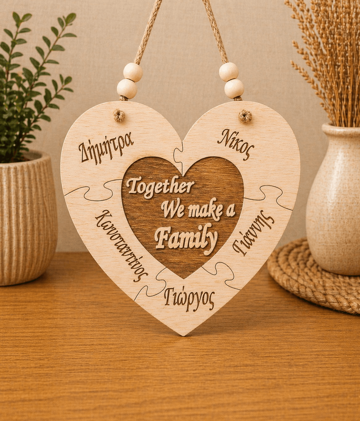 “Together we make a family”με τα ονόματα της οικογένειας, κρεμαστό διακοσμητικό